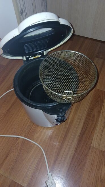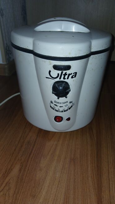 - Ultra markalı elektrikli dərin qızartma aparatı. Korpus ağ rəngdədir, üst qapaqlı. Ön paneldə rejim tənzimləyicisi (çevirmə düyməsi) və işıq göstəriciləri var, üzərində “Quick Clean” piktogramlı göstəricilər qeyd olunub. Arxa hissədə ventilyasiya barmaqlığı, qapaq üstündə daşıma tutacağı, şnur və torpaqlaşdırmalı fiş mövcuddur. Kartof, toyuq, balıq və s. üçün nəzərdə tutulub.