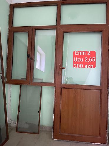 - Komplekt: 1 ədəd qapı, 2 bölməli pəncərə və yuxarı transom hissəsi; şüşə paketlər daxildir. Aşağı panel qapıda plastik doldurma, üst hissələrdə şüşə.