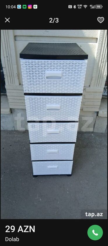 Qəhvəyi model 5 çekmeli, ağ model 4 çekmelidir. Çekmələrin içi hamar plastikdən hazırlanıb, ləkə tutmur və tez yuyulur. Saxlama üçün paltar, dəsmal, oyuncaqlar, sənəd və digər xırdalar üçün praktik seçimdir. 4mertebe - 29 azn. 5mertebe - 33 azn