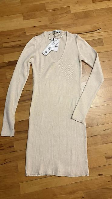 - Zeytun-yaşıl rəngdə, trikotaj fakturalı, bədənə oturan don - Uzun qol, V-formalı dekolte, bel hissəsində kəmər effektli kəsim - Dizə qədər uzunluq, elastik parça - S razmer - Qiymət: 10 AZN - Üzl...