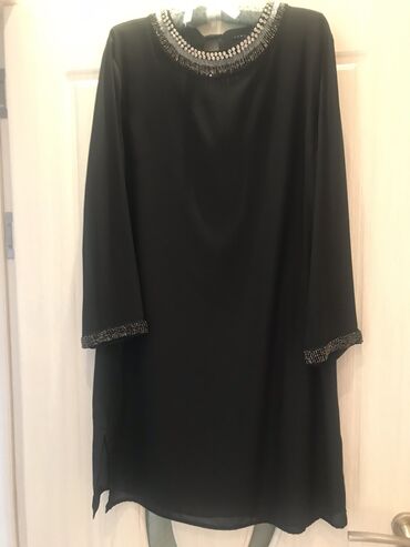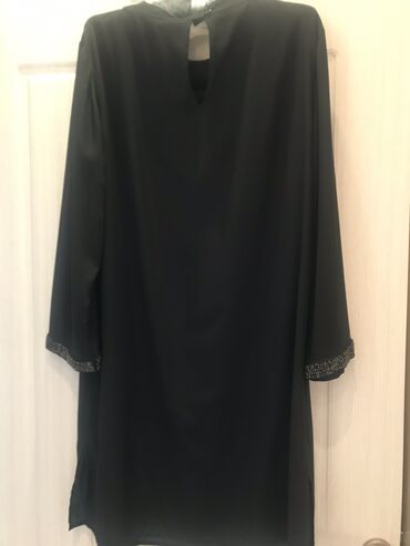 Ziyafət donu – 30 AZN - Rəng: qara - Stil: bədənə oturan, midi uzunluq - Yaxa: balıqçı tipli qapalı yaxa - Qol: qısa qol - Çiyin detalları: asma daş/sancaq bəzəkləri - Etek hissə: asimmetrik kəsim...