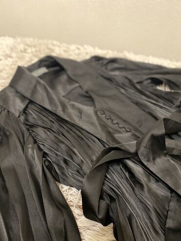 Qara məxmər ziyafət donu 1dəfə geyinilib - Model: çiyinlər açıq, V-formalı dekolte xətti - Parça: yumşaq, parıltısız məxmər - Qol: uzun, yüngülcə həcimli - Bel: parlaq daşlı kvadrat tokalı kəmər vu...