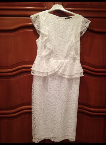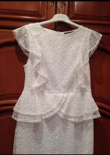 Razmeri 38, 1 dəfə geyinilib cırıqı söküyü lekesi yoxdur yenidir. Paltarın uzunluğu ölçülüb. Zolaqları tünd göy rəngdədir.