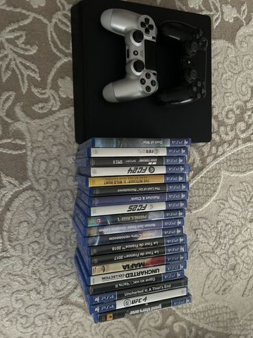 💥❌*ciddi alıcılara endirim vardır*❌💥PlayStation 4 Slim komplekti – 2 ədəd DualShock 4 pultu və çoxsaylı original disk oyunları ilə.
