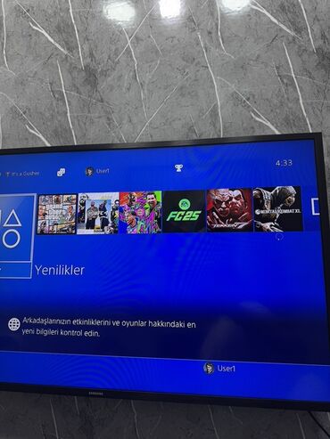 - Oyunlar menyuda görünür: Grand Theft Auto V, UFC, WWE 2K, EA Sports FC 25, Tekken 7, Mortal Kombat XL və s. (ikonlar ekranda nümayiş olunur)