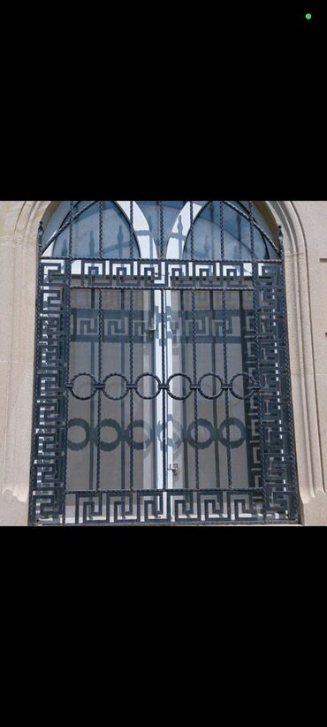 Dəmir pəncərə barmaqlıqları - Material: qalın divarlı polad/armatur (bükməli dekorativ şaquli çubuqlar), qaynaq birləşmələri. - Dizayn: klassik naxışlı barmaqlıq – üst hissədə yarımdairəvi bəzək x...