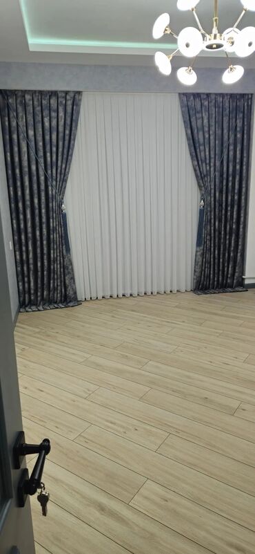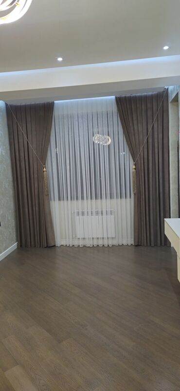 Məhsul: İkiqat pərdə dəsti + yataq çərçivəsi və döşək - Pərdələr: İki tərəfdə tünd boz rəngli, xırda naxışlı qalın pərdə; ortada krem rəngli, zolaqlı tül. Tavan altı gizli karnizlərlə tam örtüm ve...