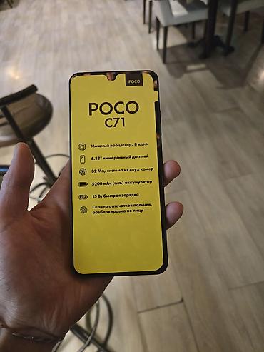 Məhsul: POCO C71 (qutuda) Xüsusiyyətlər: - Göstərilən model: POCO C71 - Rəng: Brendin klassik sarı qutulu qablaşdırması - Qutulu komplekt: telefon və standart aksesuarlar (qutu məzmunu modelin rəs...