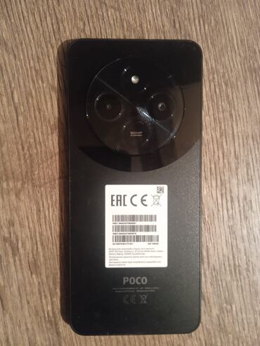 POCO smartfon - Rəng: Qara, mat teksturalı arxa qapaq - Arxa kamera bloku: 2 obyektiv + əlavə sensor/LED modul - Arxa hissədə “POCO” loqosu və “CE” nişanları - Korpus: düz kənarlar, iki böyük dair...