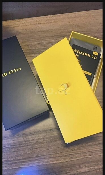 - Qutu məzmunu: Orijinal POCO X3 Pro qutusu, sənədlər (istifadəçi təlimatı, zəmanət kartı), SIM çıxarma iynəsi, şəffaf qoruyucu örtük və “Welcome to the POCO Family” kartları görüntülərdə mövcuddur.