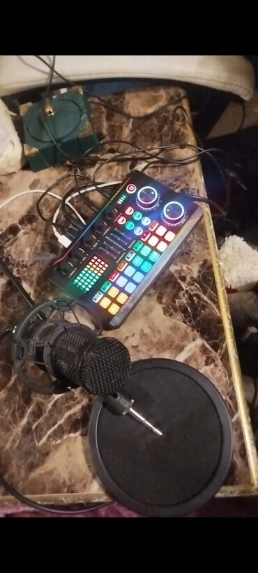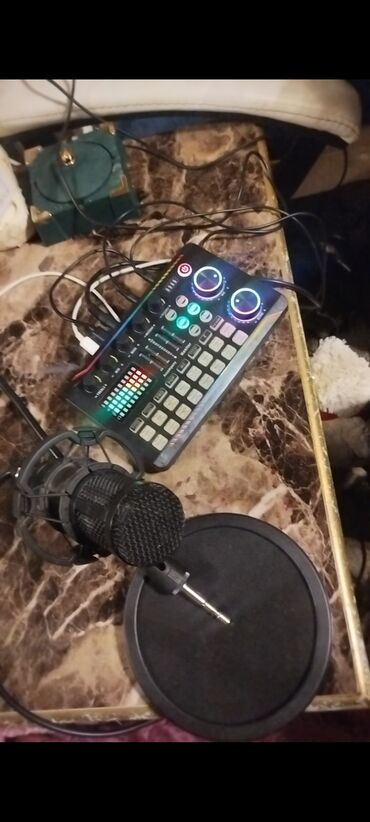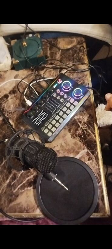TİK TOK CANKİ YAYİM UCUN aparat Ses karti mikrafin isiq Podcast və yayım üçün səs kartı + mikrofon seti
