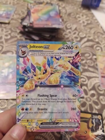 - Jolteon ex (HP 260, Tera) – Elektrik tipli, Eevee-dən təkamül. Bench-də olduğu müddətdə bu Pokémon-a edilən bütün ziyan qarşısı alınır (kart mətninə uyğun). Hücumlar: Flashing Spear (60+; Bench-dəki Pokémonunuzdan 2 Basic Energy ataraq hər biri üçün +90 ziyan), Dravite (280; növbəti turda hücum edə bilmir). Zəiflik: Fighting ×2. Retreat: 1. Pokémon ex qaydası.