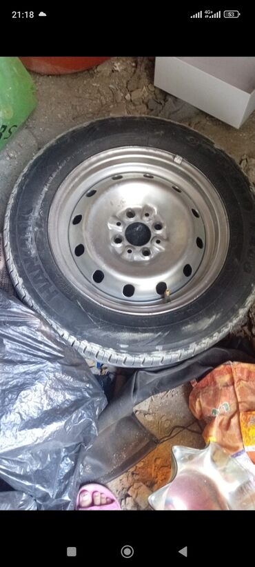 Satılır: polad disk və bir neçə ədəd şin komplekti - Disk: qara rəngli polad disk, çoxlu dairəvi ventilyasiya deşikli model. 5 bolt deşikli mərkəz (5x bolt quruluşu görünür), standart şin klapanı ...