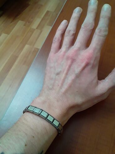 Yenidir. Gümüşdən heç seçilmir. Biləyin ölçüsü 18 sm. Qiyməti 12 AZN