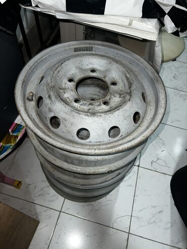 - Material: demir - Rəng: boz/ağ tonlarda - Quruluş: çox deşikli (ventilyasiya üçün dairəvi deşiklər), mərkəzi böyük açılış və 5 bolt yuvası görünür - Kənar forması: klassik ştamplı disk profili - Komplekt: şəkillərdə 4 ədəd disk