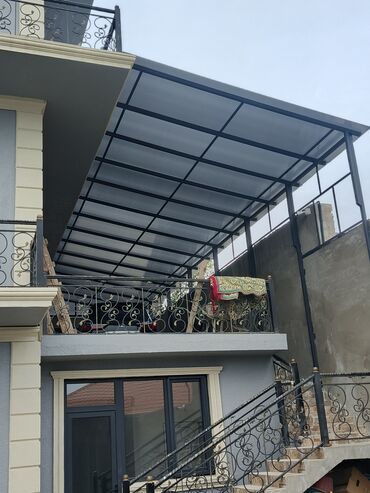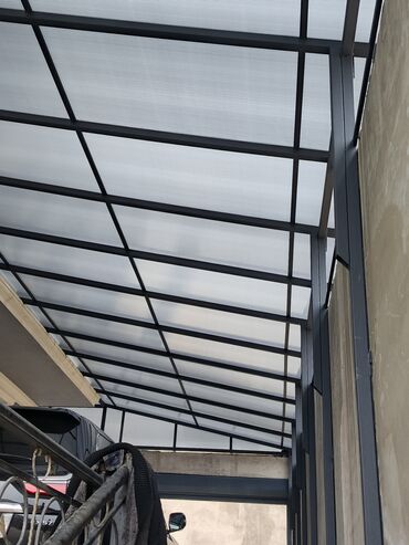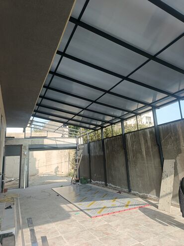 Polikarbonat dam örtüyü və metal konstruksiya - Material: şəffaf/yarımşəffaf hüceyrəli polikarbonat lövhələr - Karkas: toz boyalı metal profil, möhkəm travers və dayaq şüaları - Tətbiq sahələri: h...