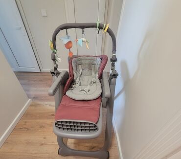 Uşaq yemək stolu/kreslosu - Rənglər: narıncı, bej və ağ kombinasiyası; yaşılımtıl naxışlı yumşaq oturacaq - Geniş, çıxarıla bilən plastik masaüstü (yuvarlaq kənarlı, asan təmizlənən) - Tənzimlənən...