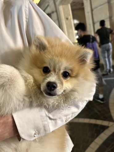 Pomeranian (Spitz) balaları - Rəng: krem/bej tonları, çox tüklü, yumşaq poqon. - Miniatür ölçü, qısa pəncələr və qıvrım quyruq – ev şəraiti üçün uyğun cins. - Canlı, oyunsevər xarakter, uşaq və di...