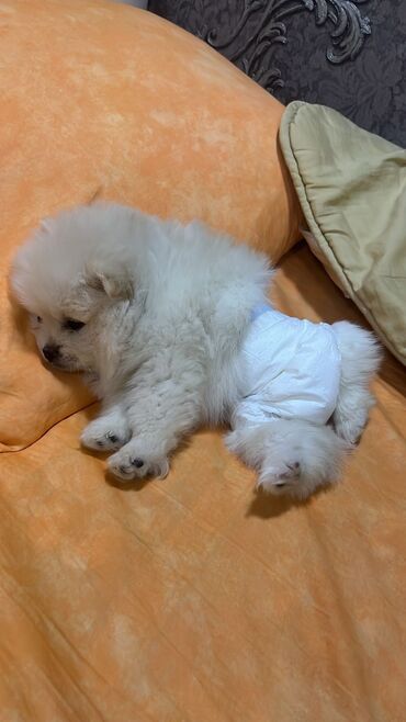 Ağ rəngli, balaca Pomeranian balası. Yumşaq, sıx tükləri və şirin sifəti var. Bu it balası daxili məkanlar üçün uyğundur və evdə rahatlıqla baxa bilərsiniz. Balaca boyu və oynaq xarakteri onu ailə üçün əla yoldaş edir. Həmçinin, bu it balası yataqda, qidalanma və təmizlik üçün rahatdır. Onun balaca ölçüsü səyahətlər zamanı rahatlıq təmin edir.