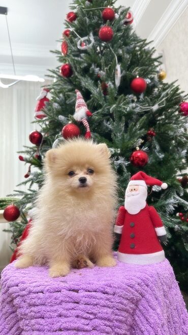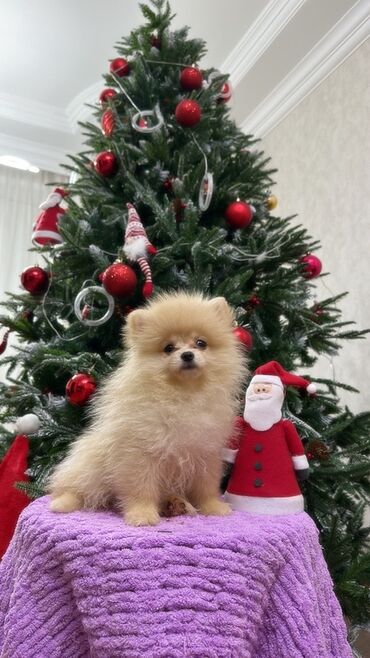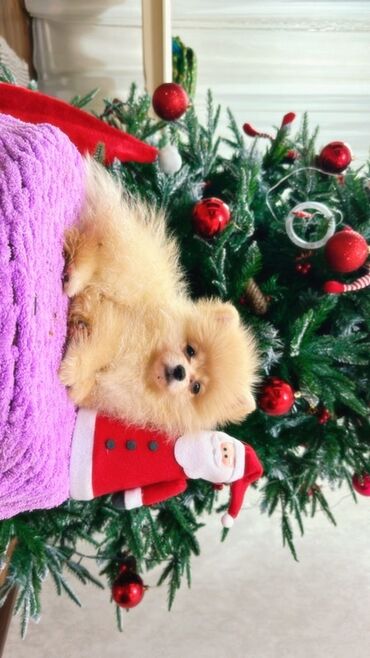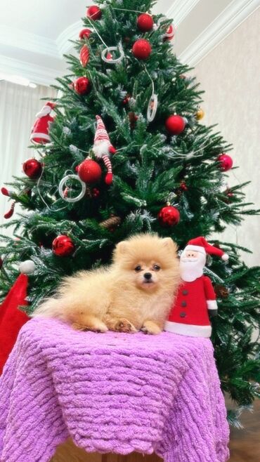 Fotoşəkillərdəki balaca, Yeni il tematik dekor fonunda göstərilib. Pomeranian axtaranlar üçün həm dost, həm də ev üçün estetik, kiçik ölçülü itdir.