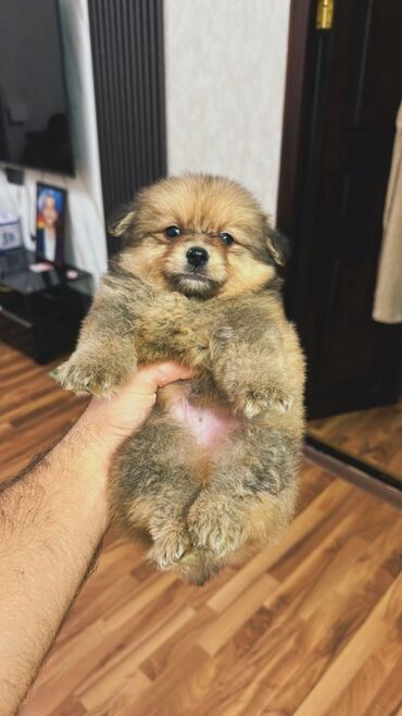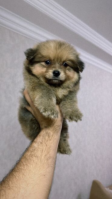 Cins: Pomeranian (Spitz) Rəng: tünd krem/qəhvəyi, üz hissəsi qara maskalı Yaş: balalıq dövrü Temiz şpits bala!dişi!30.09 doguldu!Tam saglam!Itden başi çixan,seven insanlar ucun!Ciddi olmayanlar nar...