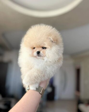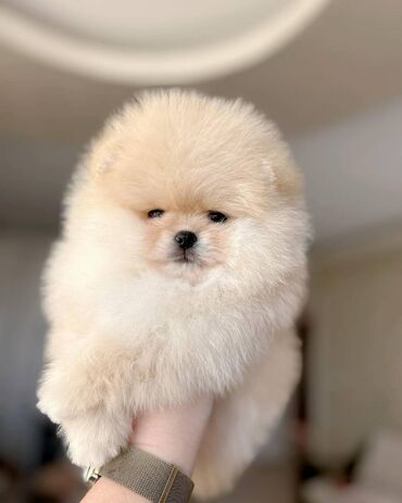 Pomeranian Spitz bala – krem rəngli, kompakt və super pofudıq “bear face” tipli.