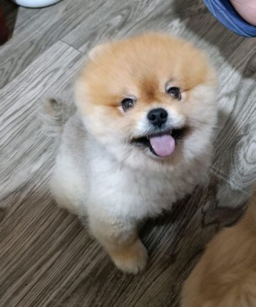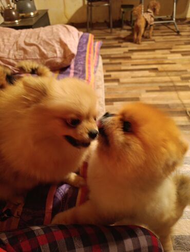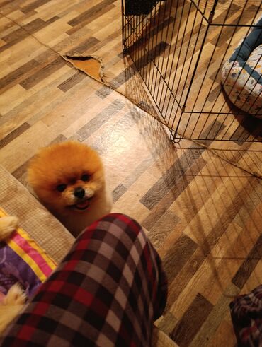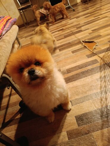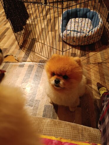 Məhsul: Pomeranian (Spitz) balaları Xüsusiyyətlər: - Cins: Pomeranian (spitz) - Rənglər: açıq şaftalı çalarları Cəmi 1 dənə qalıb erkəkdi. Solda kı bala bron edilib. Sağda olan bala qalıb.