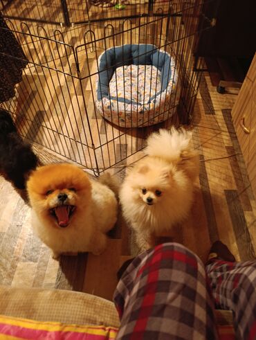 Pomeranian spitz cinsi itlər - Cins: Pomeranian (Zwergspitz) - Rənglər: qayınbalı (narıncı/qızılı) və krem-ağ - Ölçü: kiçik, kompakt bədən quruluşu, sıx və yumşaq ikiqat yun örtüyü - Xarakter: ene...