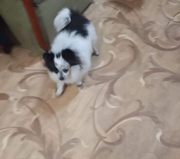 Məhsul: Pomeranian (Spitz) balaları – nadir piebald/rəngli (qara‑ağ) rəng çaları