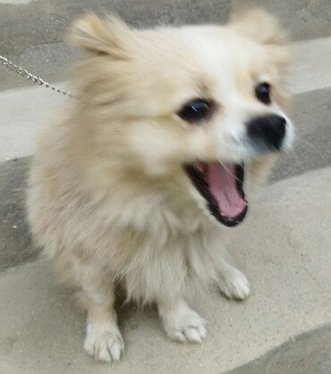Pomeranian (Spitz) cinsi it - Rəng: krem/ağ - Kiçik ölçülü, sıx və yumşaq ikiqat tüklü kürk - Qısa ağız quruluşu, qara burun və iri parlaq gözlər - Qulaqlar uclu və dik, quyruq sıx tüklü, belin üs...