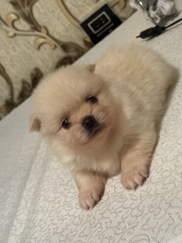 Cins: Pomeranian (Spitz) Rəng: tünd krem/qəhvəyi, üz hissəsi qara maskalı Yaş: balalıq dövrü Temiz şpits bala!dişi!30.09 doguldu!Tam saglam!Itden başi çixan,seven insanlar ucun!Ciddi olmayanlar nar...
