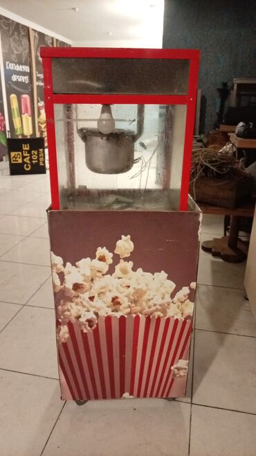 Məhsul: Popkorun aparatı və termo qazan (qarğıdalı bişirən) - Popkorun aparatı: Şüşə vitrinli korpus, elektriklə işləyir, daxildə qarışdırıcı qazan və isitmə sistemi var. Kənarları qırmızı üstlük,...