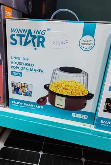 YeniPopkorn Aparatı "STAR" Firması.Evdə əziyyətsiz və ləzzətli popkorn hazirlamaq üçün mükəmməldir.Bir qədər yağ əlavə etməyiniz və bir toxnuş kifayətdir.
