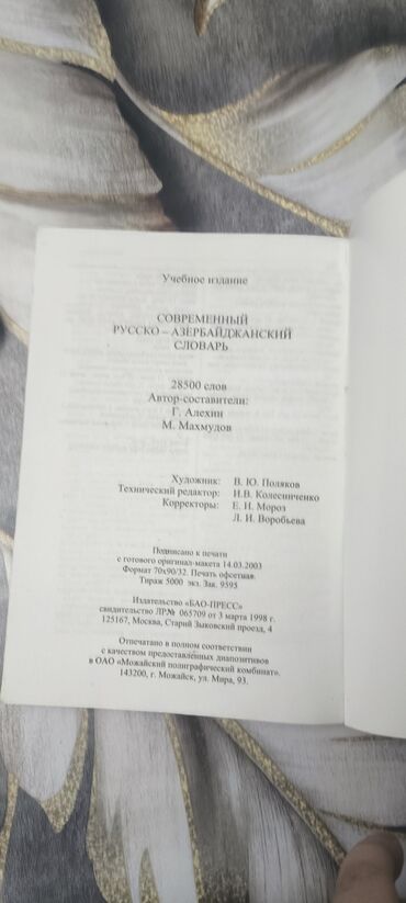 Современный Русско-Азербайджанский словарь. 2003.