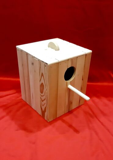 Quş qəfəsi üçün taxta yuva satılır. Uzunluğu 17sm, eni 17sm