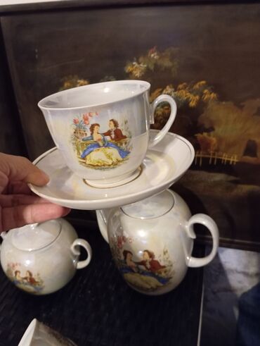 Çoxu təzədi, təcili satılır. Porselen çay və süfrə dəstləri – bir neçə fərqli model və kolleksiya: - Klassik çiçək naxışlı və qızılı haşiyəli çay servisləri: çaydan, südqabı, şəkərqabı, fincan-nəl...