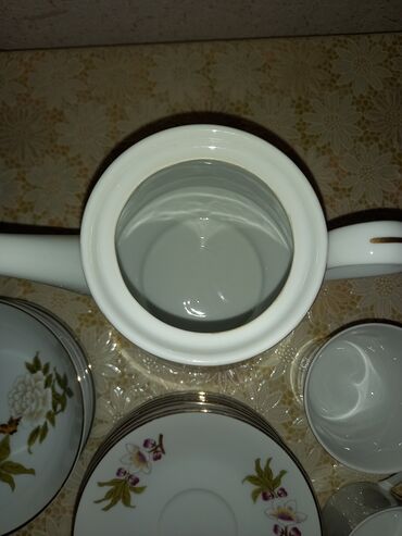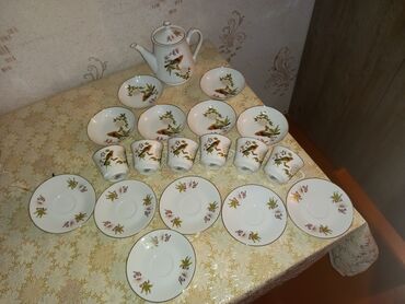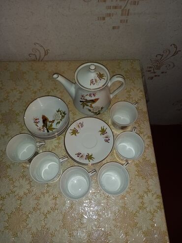 1990-cı ilin sevizi, ,6 fincan,6 nəlbəki ,1 böyük çaynik,1 süd qabı,1 qənd və ya şəkər qabı,təcilidir,çox ucuz verilir. Təzədir.40 manat