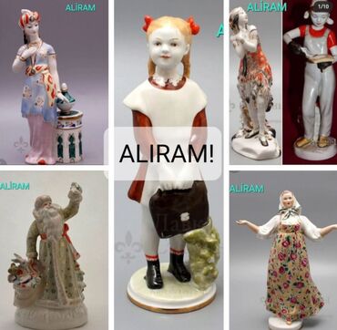Məhsul: Sovet dövrü porcelan fiqurlar və çay servisləri Təsvir: - Müxtəlif zavodlara aid incə işləməli porcelan heykəlciklər: milli geyimli qadın fiqurları, uşaqlar, işçi və sənət mövzuları, temat...