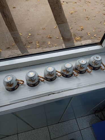 Porcelan fincan dəsti – 6 nəfərlik - Material: yüksək keyfiyyətli porselen - Rəng: ağ, gümüşü naxışlı - Dizayn: kvadrat formalı fincan və boşqablar, dalğalı kənarlar; fincan və boşqab üzərində çiç...