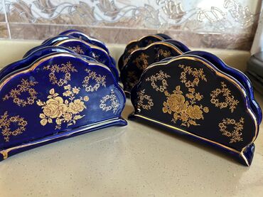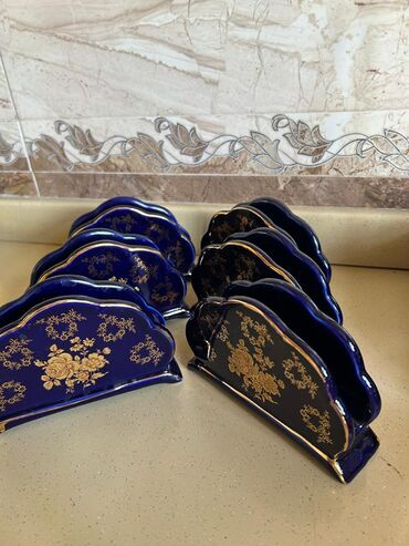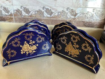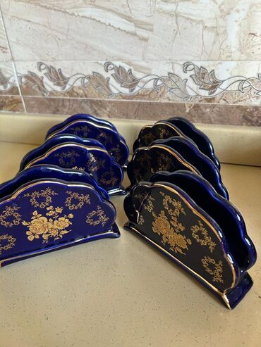 Zərif qızılı naxışlı kobalt salfetliklər süfrənizə klassik zəriflik qatır və dekorativ element kimi də diqqətçəkəndir.
