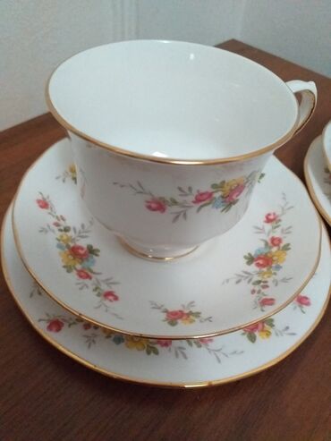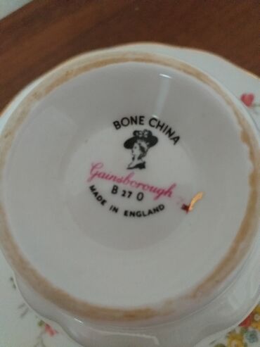 Gül naxışlı, zərif ağ rəngli, qızılı haşiyəli Gainsborough sümük çini çay dəsti. Hər dəstə bir fincan, bir altlıq və bir boşqab daxildir. Bu dəst zərif tədbirlər və ya gündəlik istifadə üçün uyğundur.