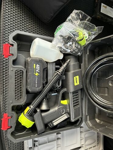 Qutudakı şəkillərdə və etiketdə “Water Gun for Car Washing”, 48V Li-ion batareya qeyd olunur. Made in China.