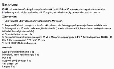 K-898 portativ çoxfunksiyalı megafoon/dinamik mikrofonlu