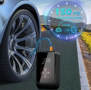 Powerbanklı LED displeyli hava kompressoru – avtomobil, motosiklet, velosiped, top və hovuz aksesuarlarını şişirtmək üçün.
