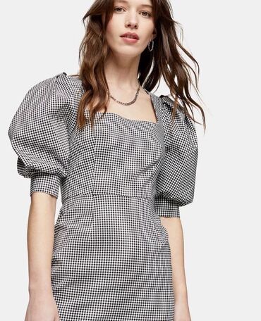 Pulsuz çatdırılmaПлатье - футляр с рукавами буфами в мелкую клетку. Подойдет, как для стильных офисных образов, так и для нарядных.