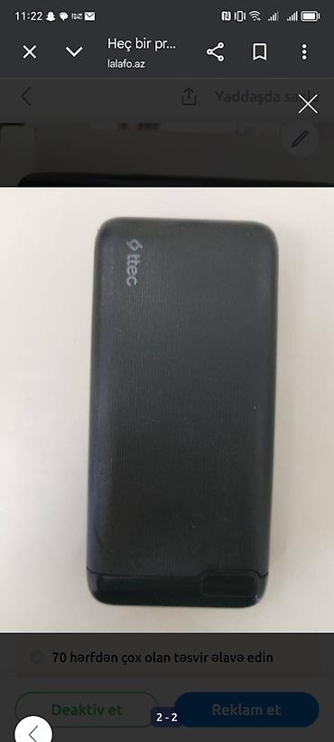 Məhsul: Portativ enerji bankları (2 ədəd) 1) Yaşıl iThink powerbank - Tutum: 10000 mAh (korpus üzərində qeyd var) - Girişlər: USB‑C, micro‑USB - Çıxışlar: 2 x USB‑A - Göstərici paneli: LED göstəri...