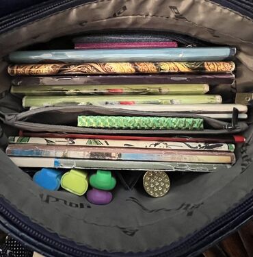 Prada çanta, çernel (tünd mavi) rəngidir.İçərisində 6 gözü var, şəkildən də gördündüyü kimi 2-si zamokludur. Çölündə (arxa tərəfində) 1 gözü var, zamokludur. Heç bir defekti yoxdur, yenidən seçilmi...