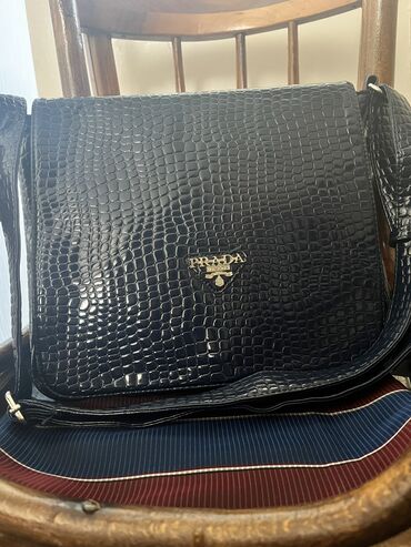 Prada çanta - heç bir defekti yoxdur. Şəkildən də göründüyü kimi içərisində 6 cibi, çöl hissəsində isə 1 cibi var. Çöldəki cib və içəridəki 2 cib zamokludur. İri həcmli çantadır, tutumu çoxdur. Qiymət 15 manat yox 10 manat olacaq.