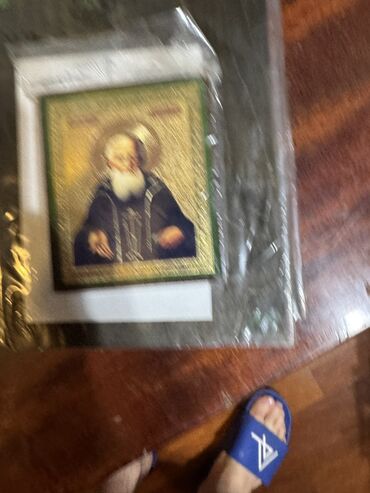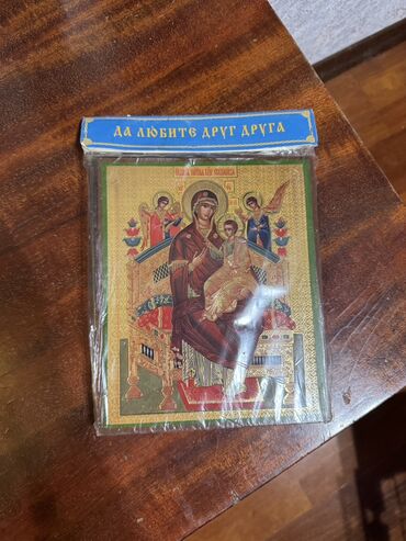 - İkonalar şəffaf qoruyucu plyonka içindədir, yuxarı hissəsində kilsəslavyan dilində “Bir-birinizi sevin” və “İnancınıza görə sizə olsun…” yazılı karton başlıq mövcuddur.