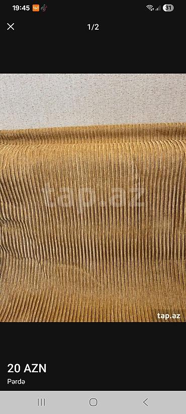 Pərdə - Material: sıx toxumalı, şaquli rellefli (çertyojlu) parça -